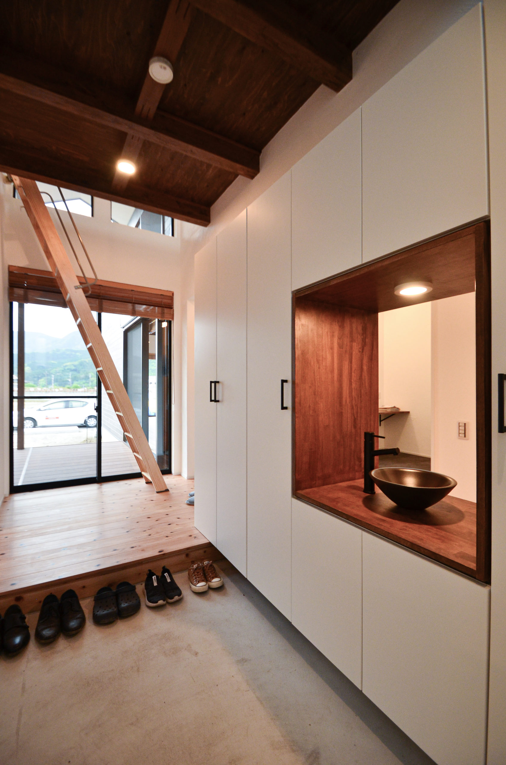 玄関に洗面を配置することで