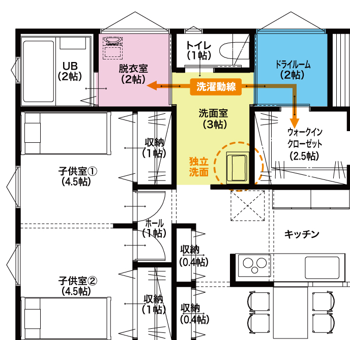 ●ドライルームを洗濯動線上に配置して